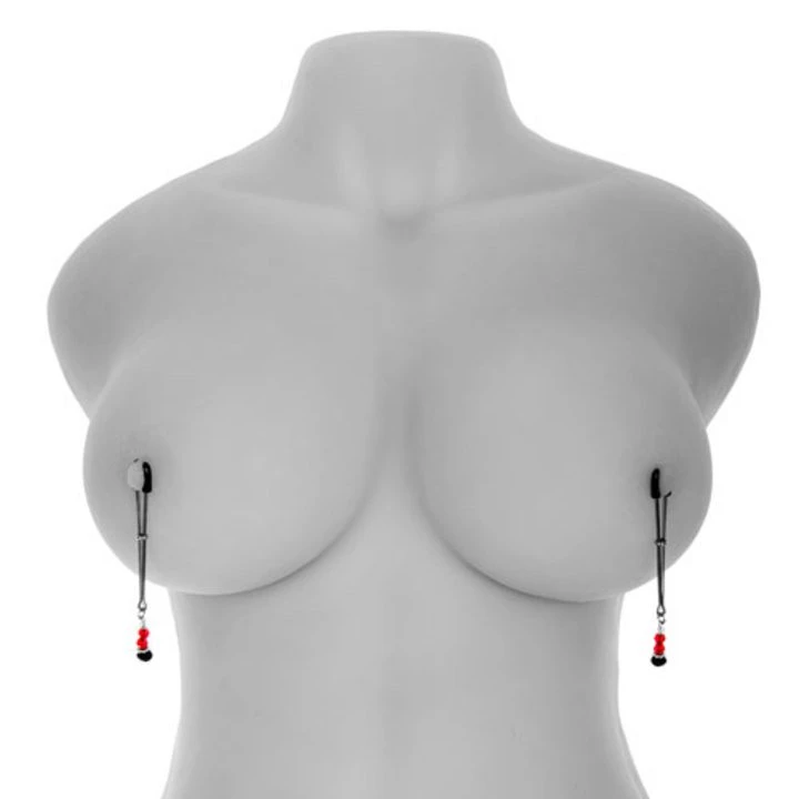 These gorgeous Adjustable Nipple Tweezers with Beads from Bondara are a beautiful set of nipple clamps that are ideal for adding some intense nipple stimulation into your sex life, and they can be worn during foreplay, masturbation and sex. The clips consist of a two pronged silver clip with black rubber tips for comfort and even pressure, a sliding silver ring that closes the prongs and can either add or lessen the pressure of the clamps. On the base of each clip there is a small amount of red, silver and black beaded detailing for that gorgeous extra touch, so you can enjoy some dangly nipple jewellery and intense stimulation all at the same time.