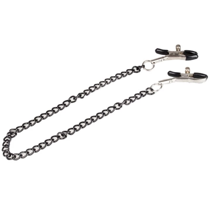 The black chain connects the clamps and is perfect for giving gentle tugs for sudden, sharper sensations.ย