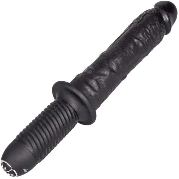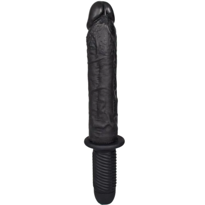 With a total length of 14 inches and an insertable length of 8.5 inches, this extra large dildo delivers a sensational feeling of fullness before you even turn the vibrations on! Realistically textured with pronounced veins and a bulbous head, you’ll be trembling as you sink every inch of this fantasy phthalate-free dildo. Just add an ample slick of water-based lube and stay in total control with the grooved handle that’s perfect for couples’ roleplay!
